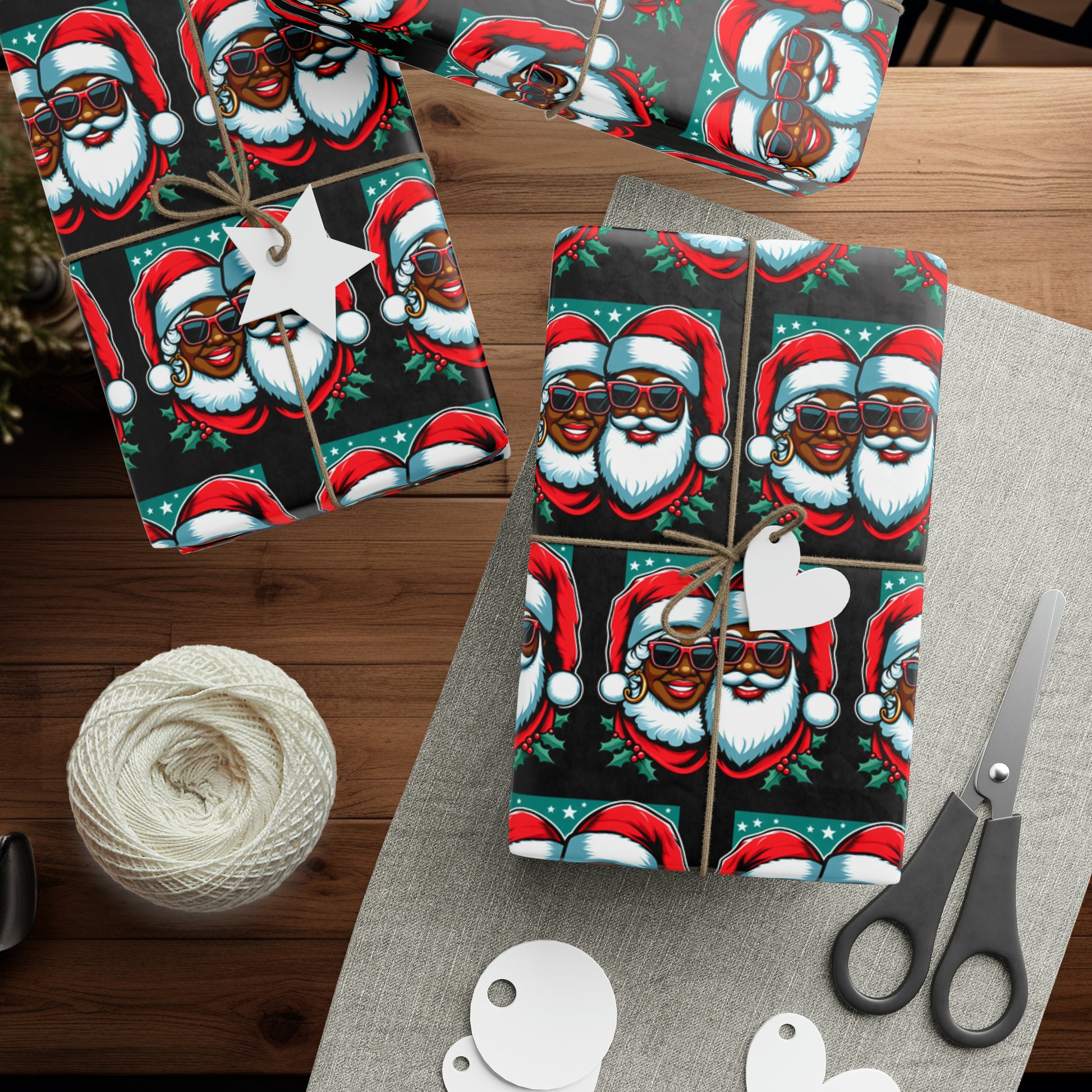 African American Santa Claus Wrapping Paper, Black Santa Wrapping Papers, Gift Wrap, Melanin Santa Gift Wrap, Christmas Wrapping Paper