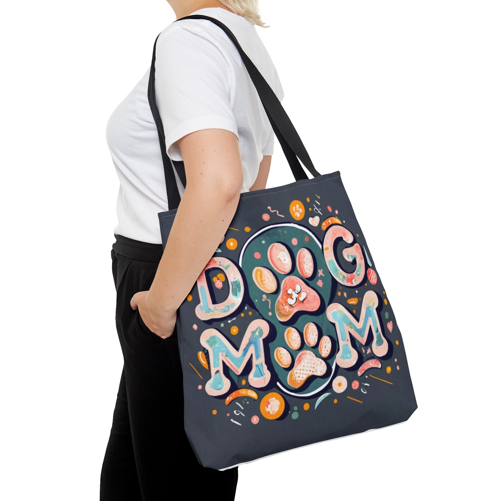 Carry the adventure with you and showcase your love for furry friends with this bold tote! Featuring a unique and eye-catching Dog Mom design on both sides, it's convenient and stylish - perfect for every dog-loving mom!