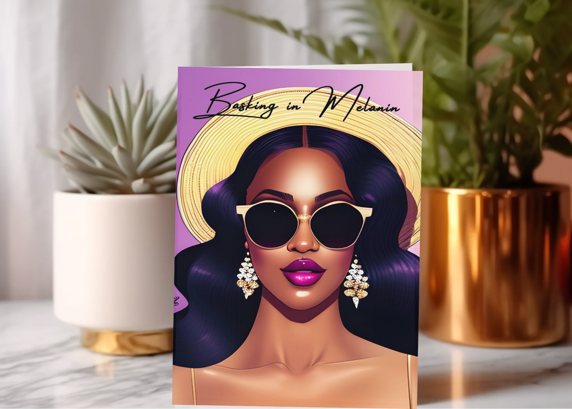 Greet someone special with this totally melanin-filled card! Featuring a unique design to show your love and appreciation, Basking in Melanin is sure to make anyone's day! You can't go wrong with spreading some extra love and positivity, so hit the 'add to cart' button and bask away!