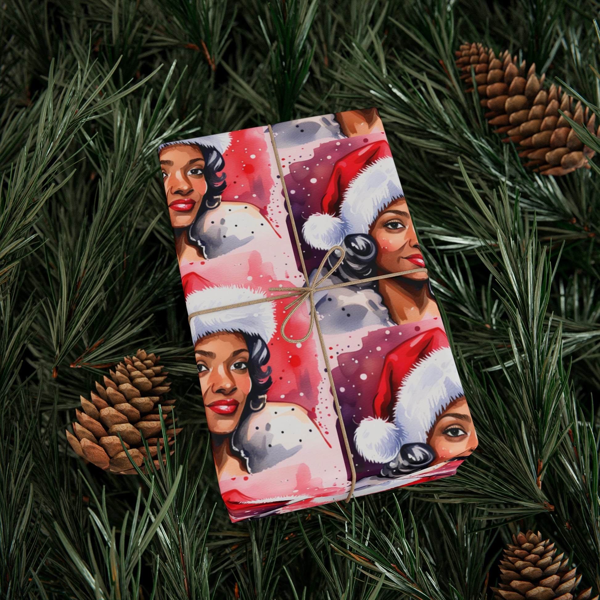 This beautiful, glossy wrapping paper is perfect for adding a touch of holiday cheer to any gift. Each sheet features Mrs Claus in all her melanated glory. This paper is sure to make your gifts stand out under the tree.
